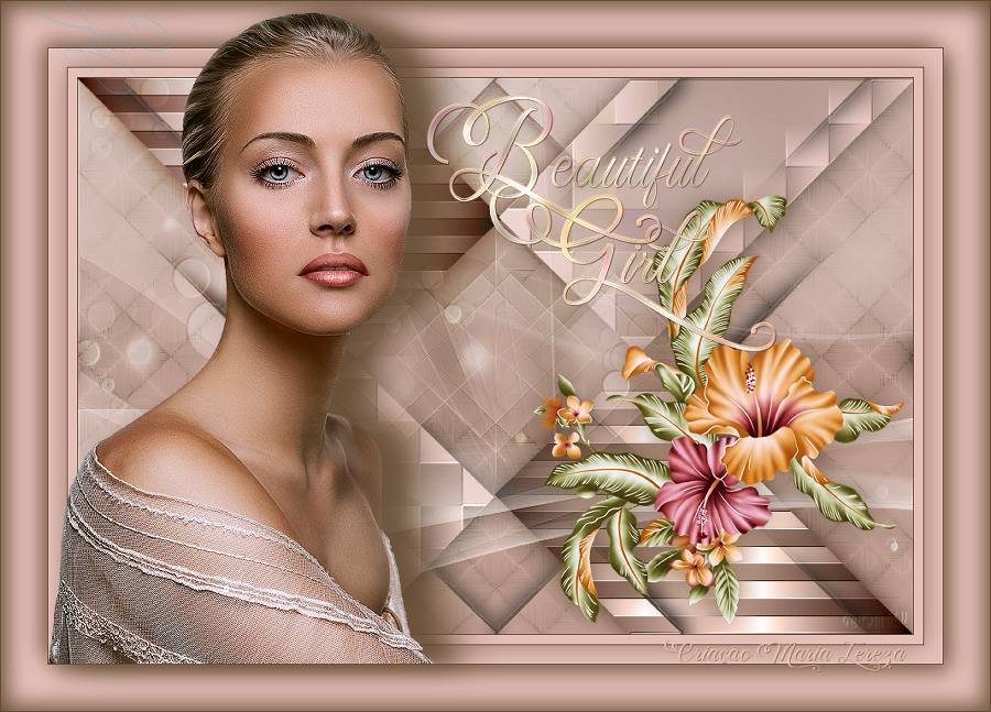 | 12 - Abrir o arquivo beautifulgirl_mtatit, copie e cole em sua área de trabalho. Diminua 80%, coloque-o à direita, acima da flor. Se quiser, pode usar o colorizado que está em anexo. Contudo, se preferir o original, colorize-o na cor de seu trabalho. Se, ainda, não estiver satisfeito(a) com as minhas opções, escreva com a fonte que melhor lhe aprouver. | |||