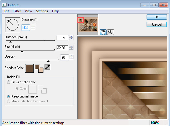 06 - Load/ Save selection/ Load selection from alpha channel/ Selection #5. New layer. Pinte com um gradient linear 90/ 1. It@lian Editors Effects/ Effecto fantasma/ 41/41. Select none. Edge/Enhance. Drop shadow como o anterior, mas troque a cor preta pela escura da sua material properties. Effects/ Image effects/ Seamless tiling/ stutter. Rotating mirror/ H e V=0/ Rotation angle=180/ wrap marcado. |