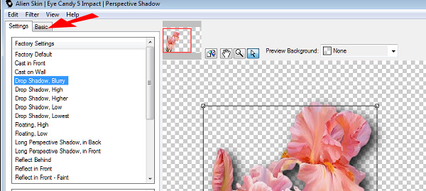 11 - Cole seu tube em nova layer. Drop shadow como quiser. Usei Alien Skin Eye Candy 5: Impact/ Perspective Shadow/ conforme print.
